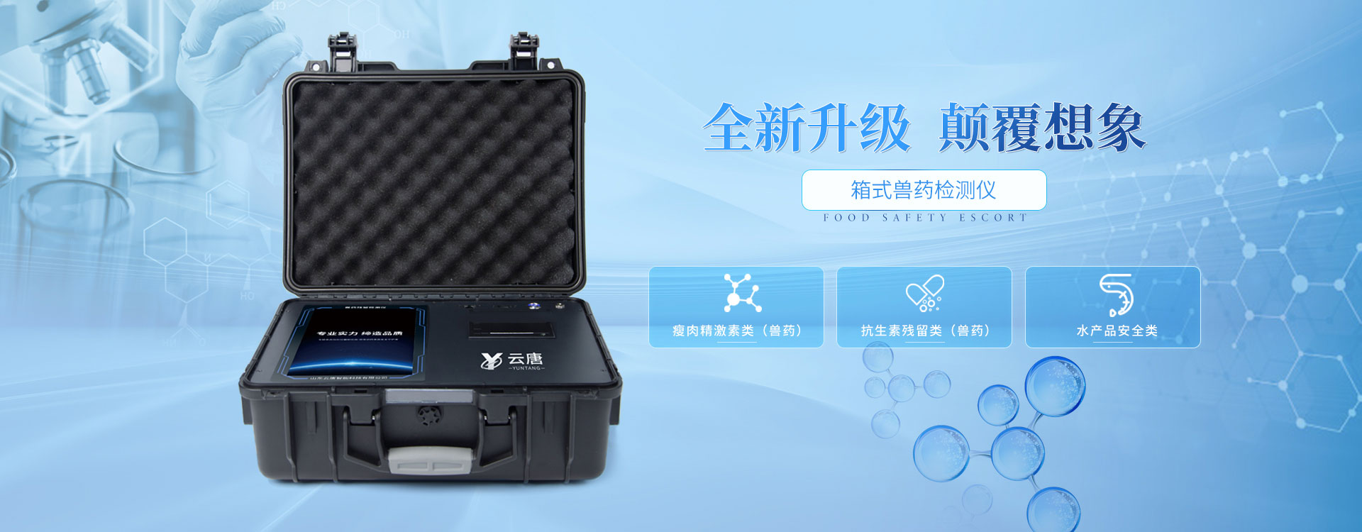 山東云唐智能科技有限公司主營業務是研發、生產:獸藥殘留快速檢測儀、病害肉檢測儀、瘦肉精檢測儀等快檢設備,為食品藥品監督委員會、第三方檢測機構,以及農副產品檢測等相關領域提供綜合解決方案。多年來,公司研發生產了百余種食品檢測專用儀器和相關集成系統方案,產品銷往全國各地。